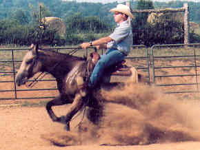 | Fourth out of 17 entries at the TNRHA Special Event 3 Year Old Open class 10/23/04 at Smoky Mountain Reins with rider Chris Hull BGRHA 2004 Reserve Champion in Green Reiner II with Leanne Butler Winner of Green Horse class at the TNRHA show, Smokey Mountain Reins on Sunday 10/24/04 with Chris Hull Second under both judges at first show-KY State Fair in Novice Amateur Reining with owner Leanne Butler Circuit Champions in Green Reiner II at the BGRHA, Reining on Music Whoa, 8/04. 2004 NRHA money earner FOR SALE - $12,000 for 2-1 package Eligible for the closed event VBC Derby to be held in Harriman, TN in October, 2007!. Pictures taken by Marna Hull in August, 2004 |
