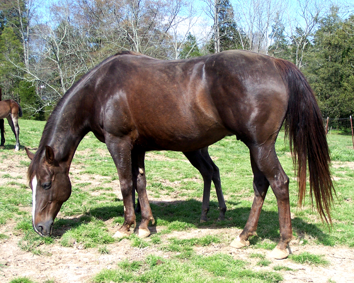 Update: Peaches had a gorgeous bay filly by Start Chic Olena in 2013! Congrats!